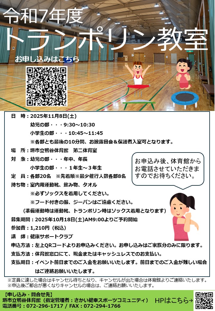 令和7年度トランポリン教室開催のお知らせ
