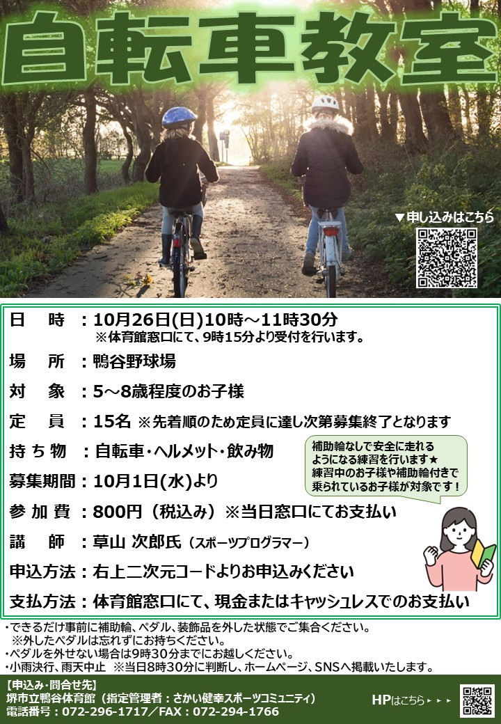 自転車教室開催のお知らせ