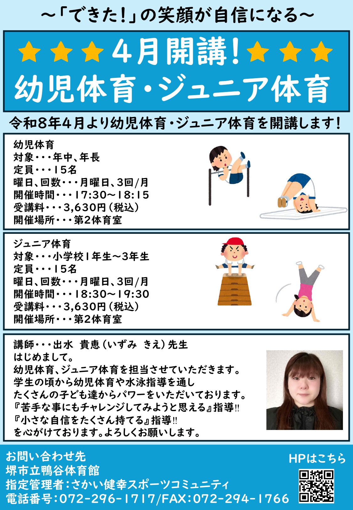 4月開講! 幼児体育・ジュニア体育のお知らせ