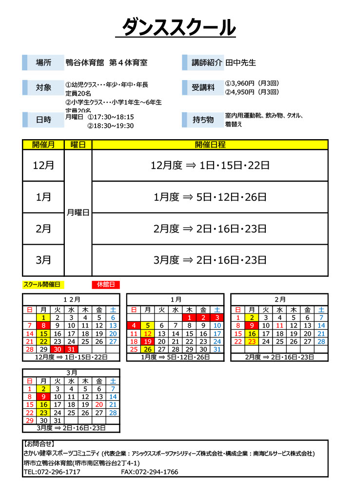 幼児クラスと小学生クラスの2部制で、月3回、月曜日に実施します。
