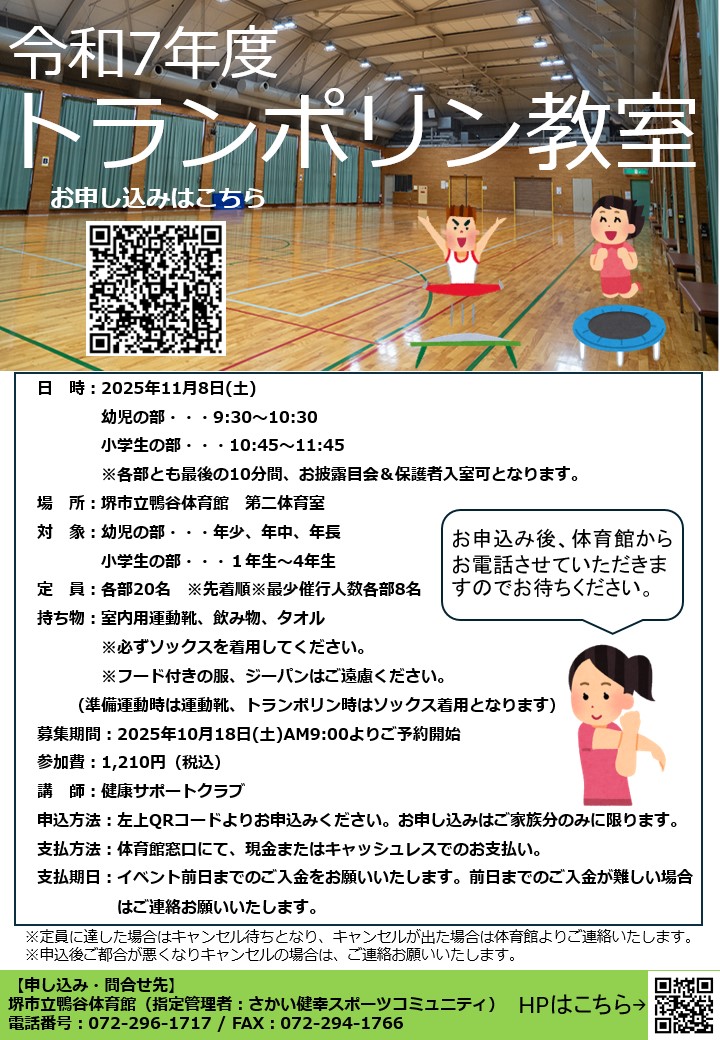 本日より11月8日(土)開催のトランポリン教室の募集を開始いたします。